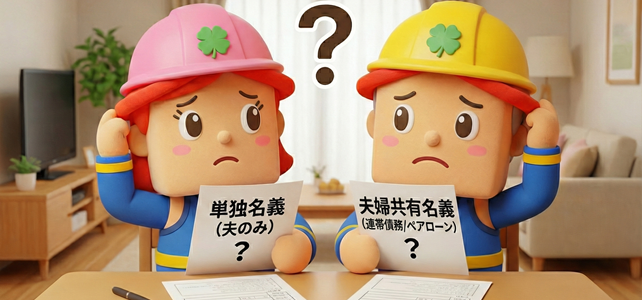 夫婦共有名義は、夫婦二人ともがローンの債務者となり、物件の所有権もそれぞれの持分で登記するケースが一般的です。